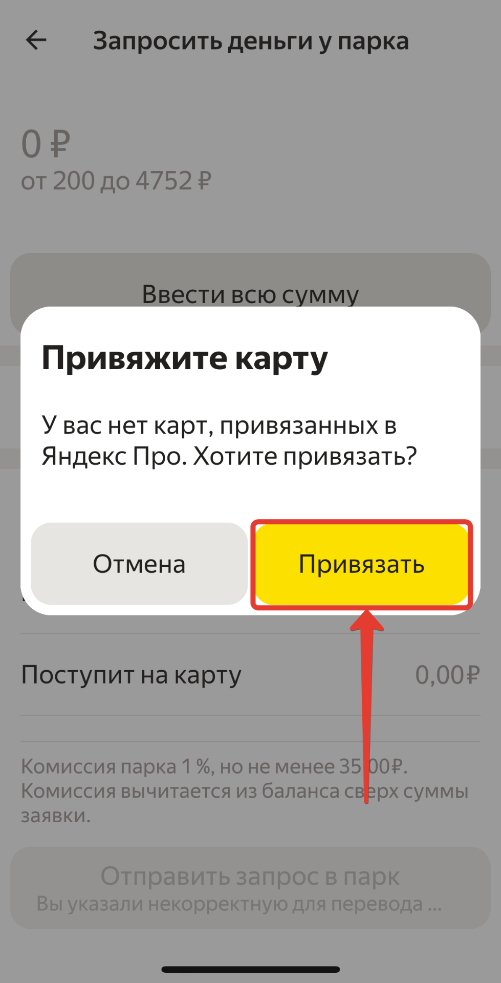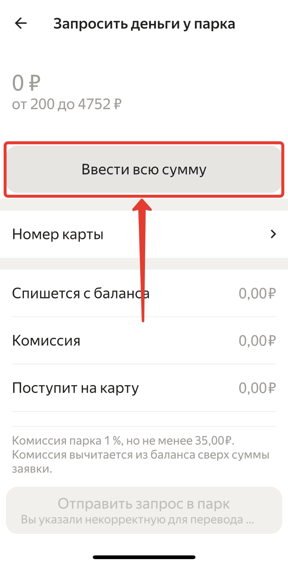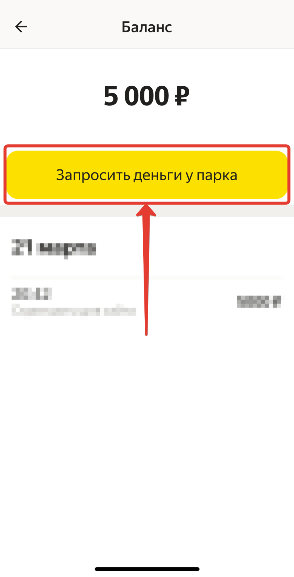 Нажать на кнопку "Запросить деньги у парка"